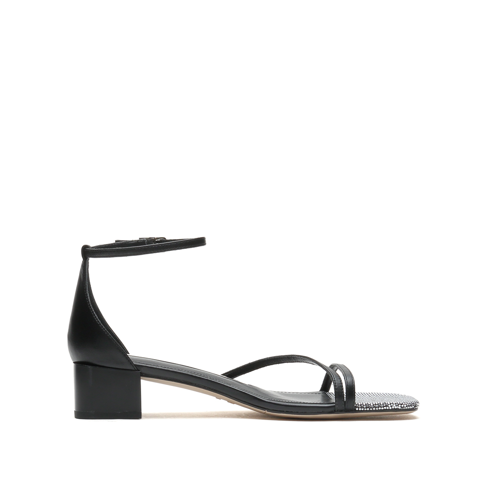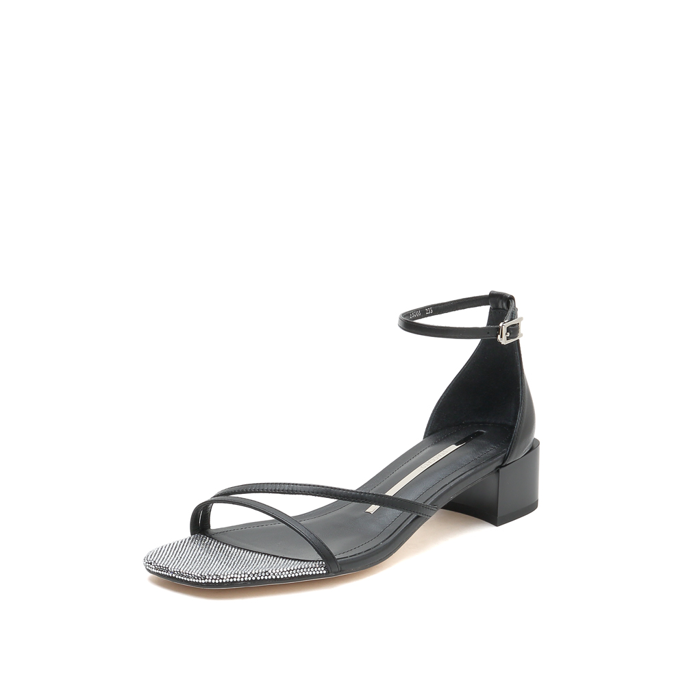 性感中粗跟一字带凉鞋