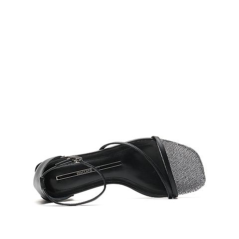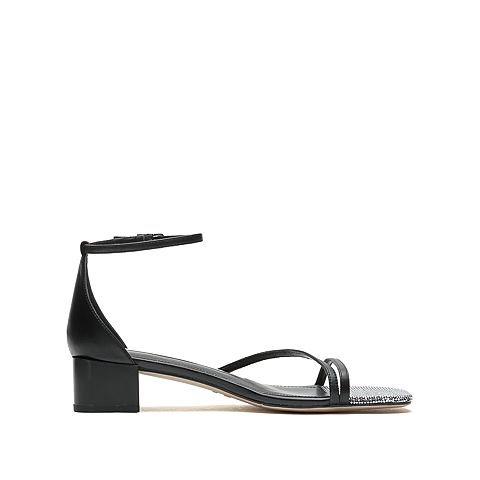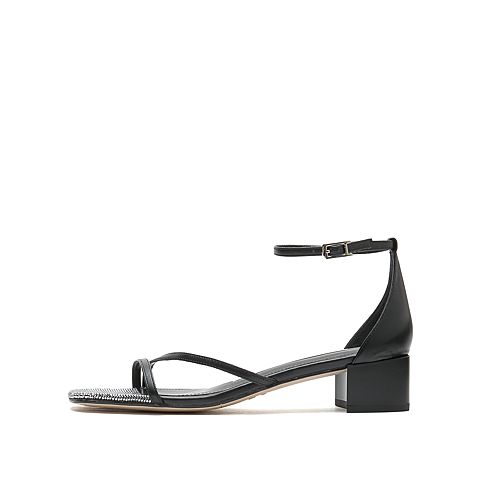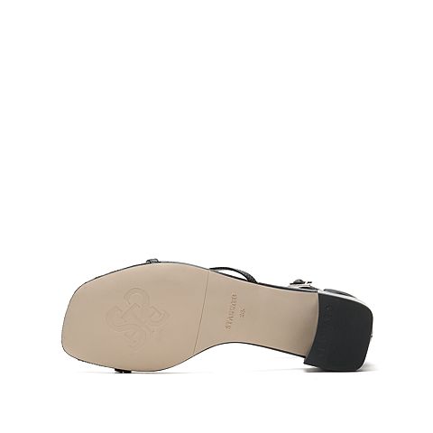 思加图2021夏季新款简约一字带凉鞋粗跟女皮凉鞋EBO06BY1