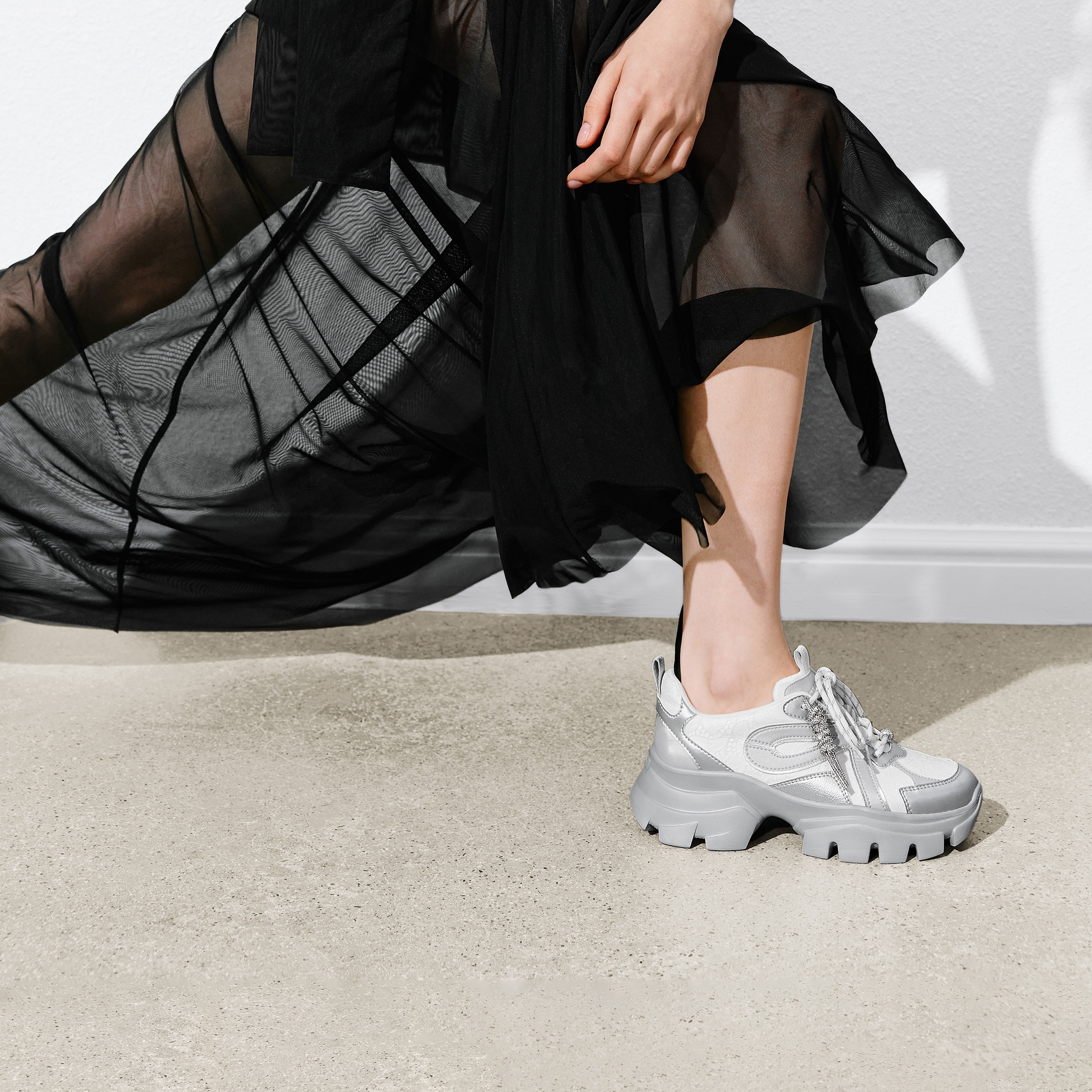 思加图2026春季新款百搭老爹鞋小白鞋厚底运动休闲鞋女鞋ECE14AM6
