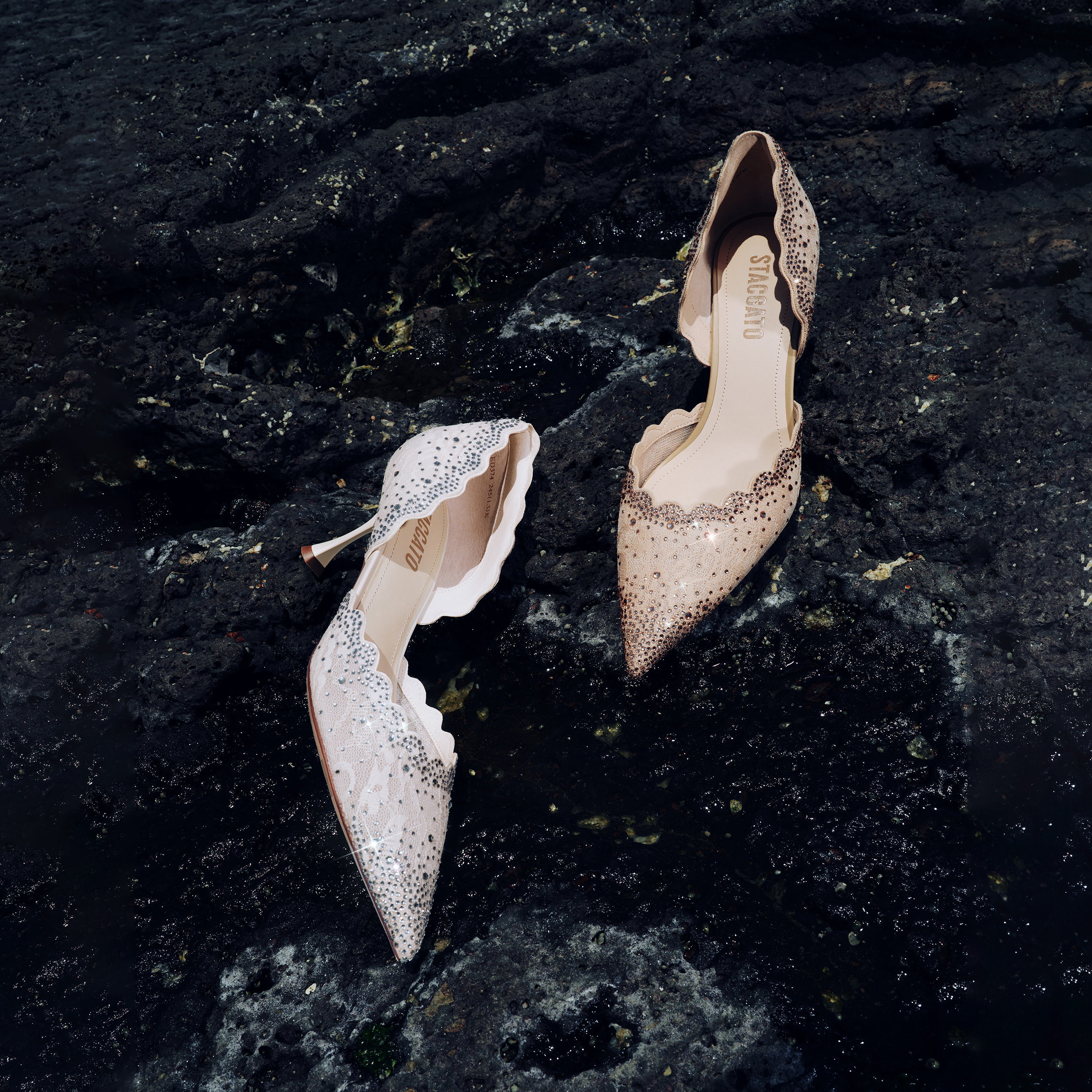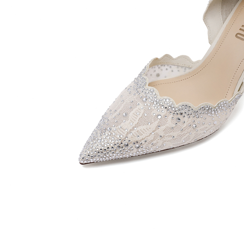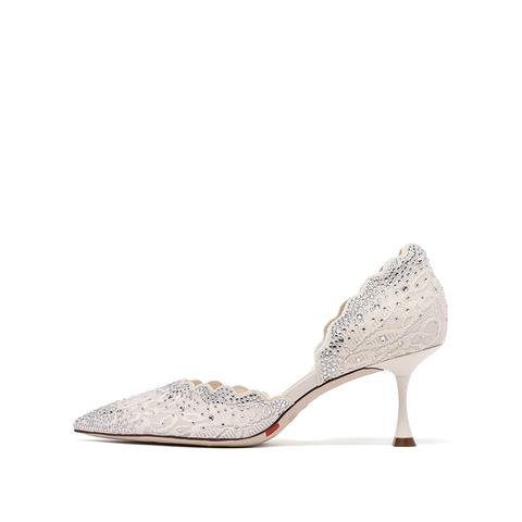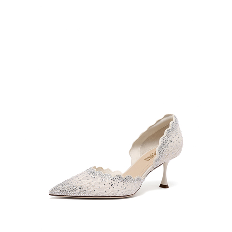 思加图2023秋季新款星光仙女鞋蕾丝单鞋细高跟鞋优雅婚鞋女鞋子ED374CK3