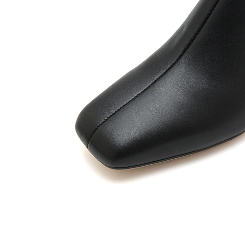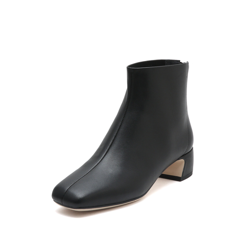 思加图2022冬季新款简约通勤粗跟短靴女皮靴EFK01DD2
