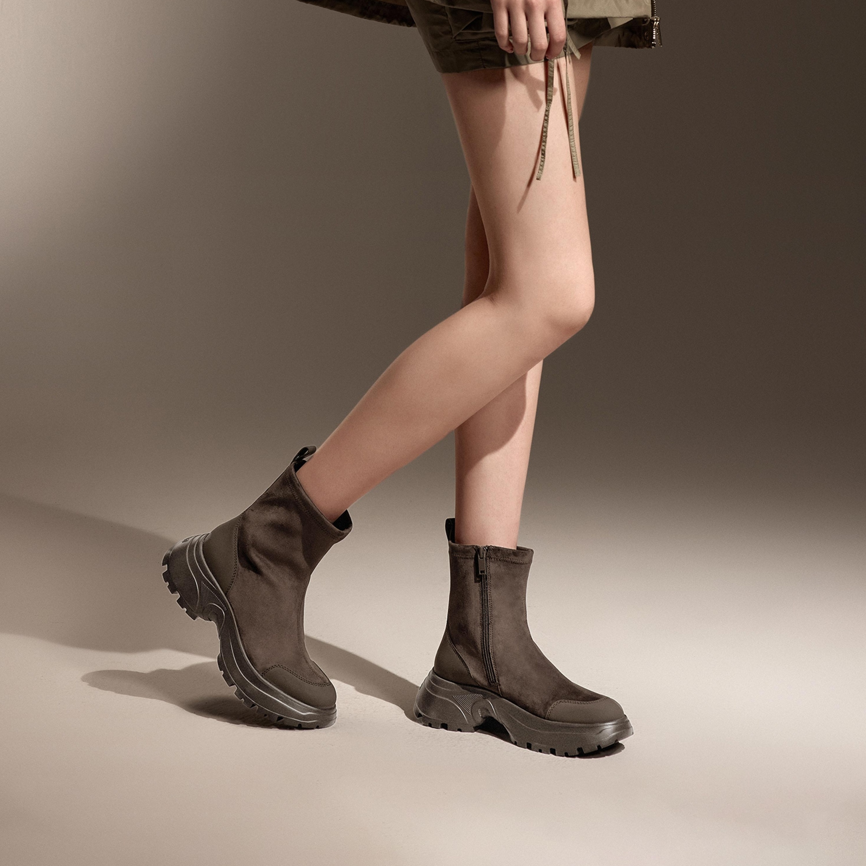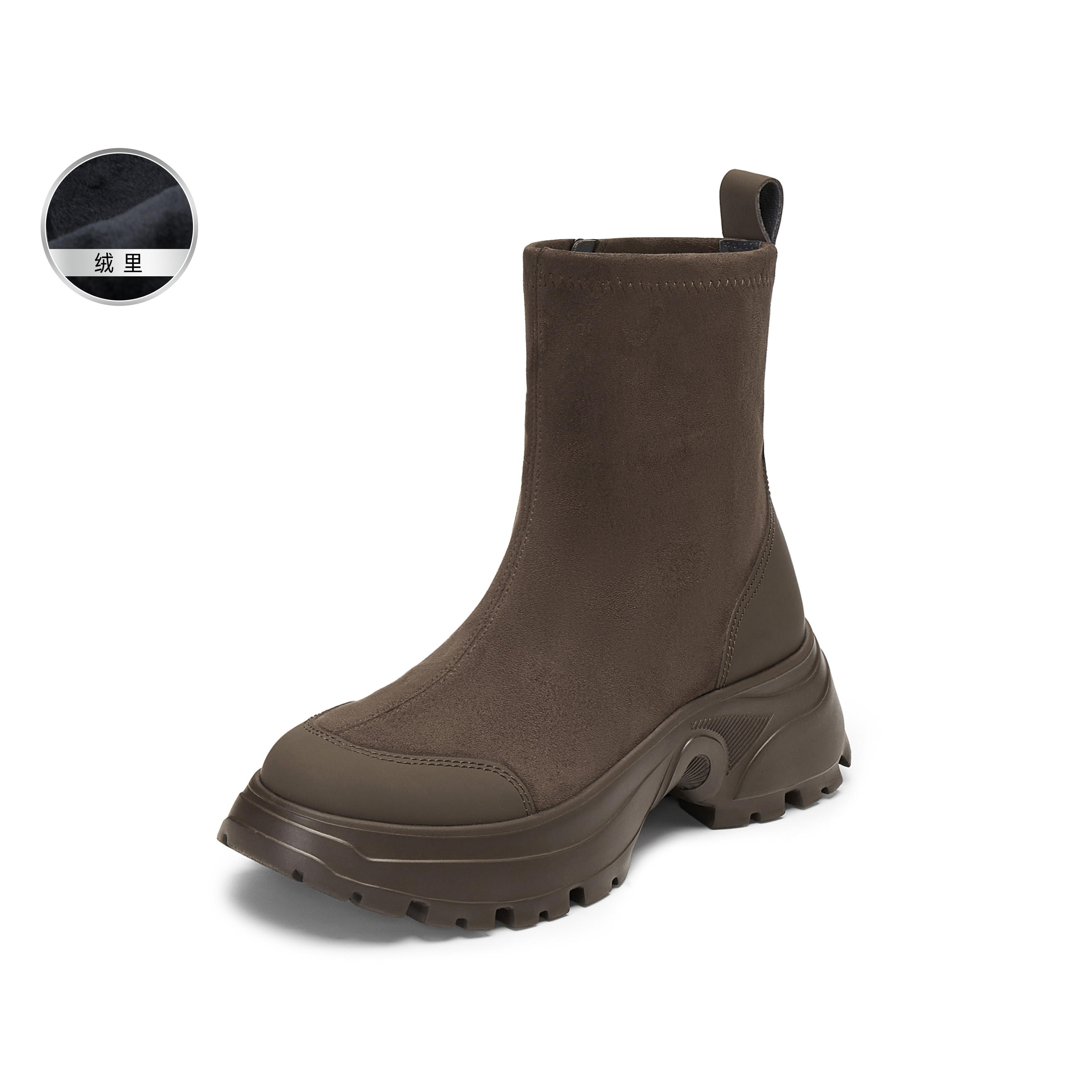 思加图2025冬季新款丝绒可可弹力靴厚底中靴瘦瘦靴女靴EFU29DZ5