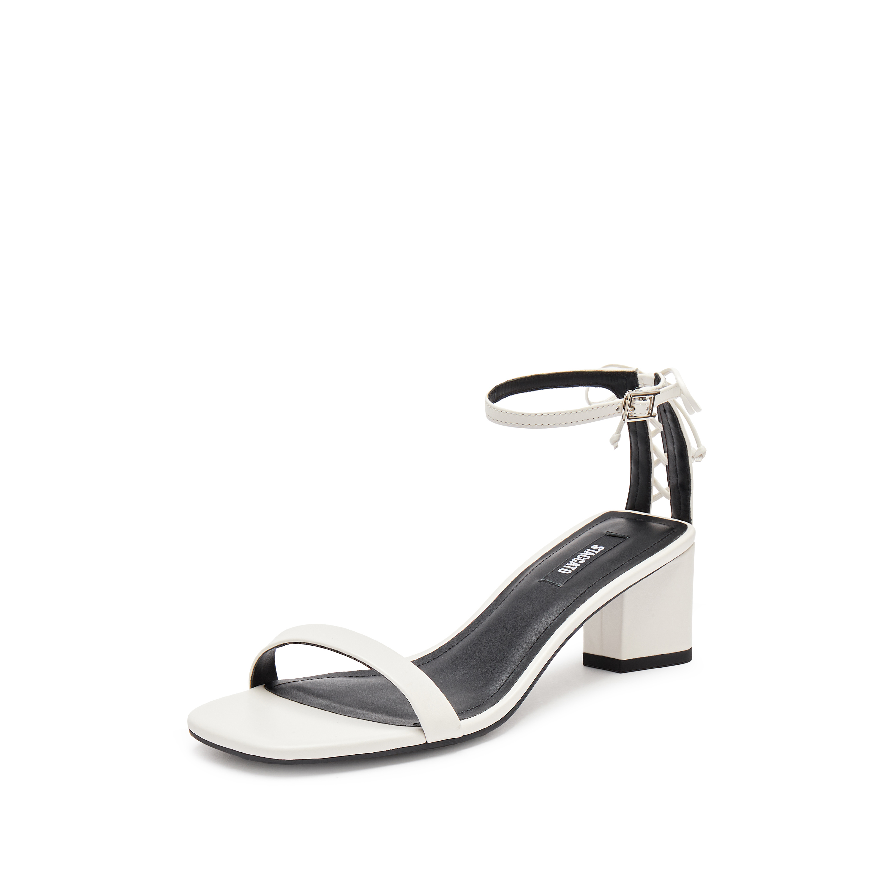 思加图2024夏季新款Diva粗跟鞋优雅一字带凉鞋方头女凉鞋EG001BL4