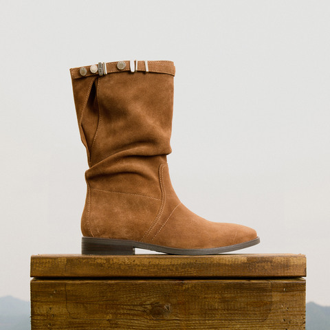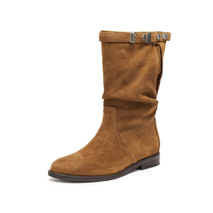 思加图2025冬季新款复古西部靴牛仔靴休闲靴中高靴女靴子EIL03DS5