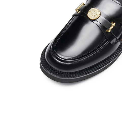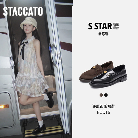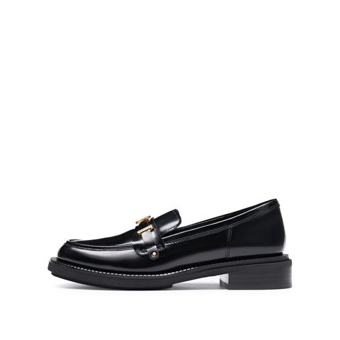 思加图2026春季新款英伦风乐福鞋一脚蹬粗跟单鞋女皮鞋EOQ15AA6