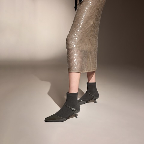 思加图2024冬季新款弹力靴袜靴短靴细跟时装靴女皮靴子ES804DD4