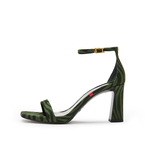 思加图2024夏季新款绿野仙踪一字带凉鞋粗跟高跟鞋黑色女凉鞋子EWA01BY4