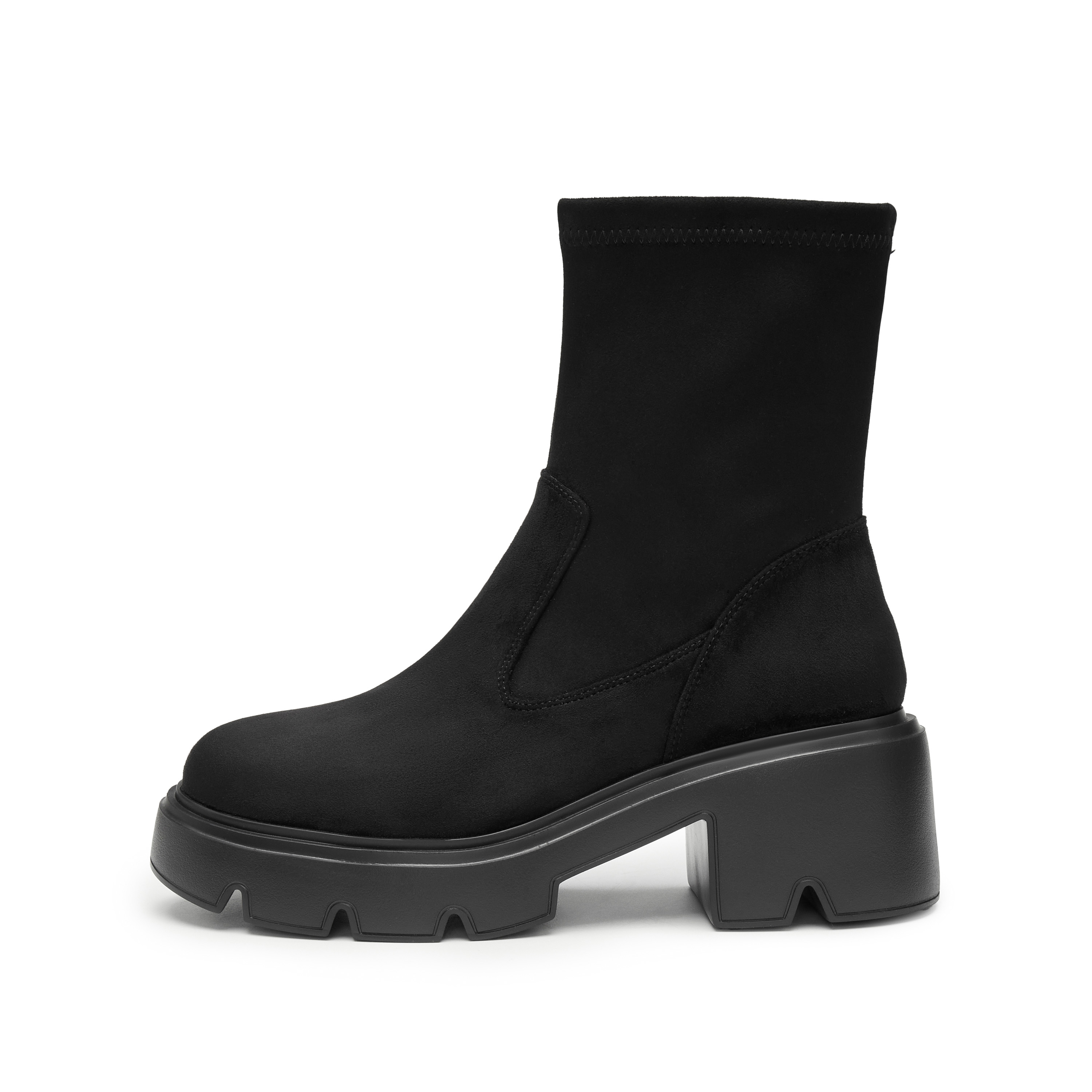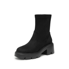 思加图2024冬季新款复古弹力靴中靴瘦瘦靴厚底增高女靴子F0512DZ4