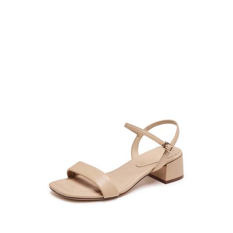 思加图2025夏季新款通勤一字带凉鞋奶油鞋粗跟鞋女凉鞋H8837BL5