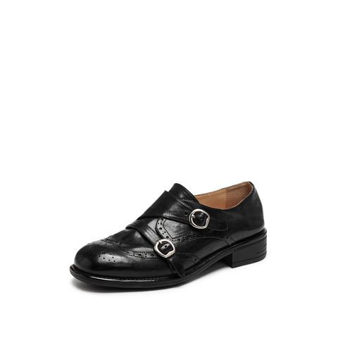 思加图2026春季新款孟克舞曲英伦风牛津鞋布洛克鞋皮鞋女J1786AM6