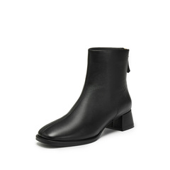 思加图2024冬季气质通勤短靴时装靴粗跟复古女靴子J2560DD4
