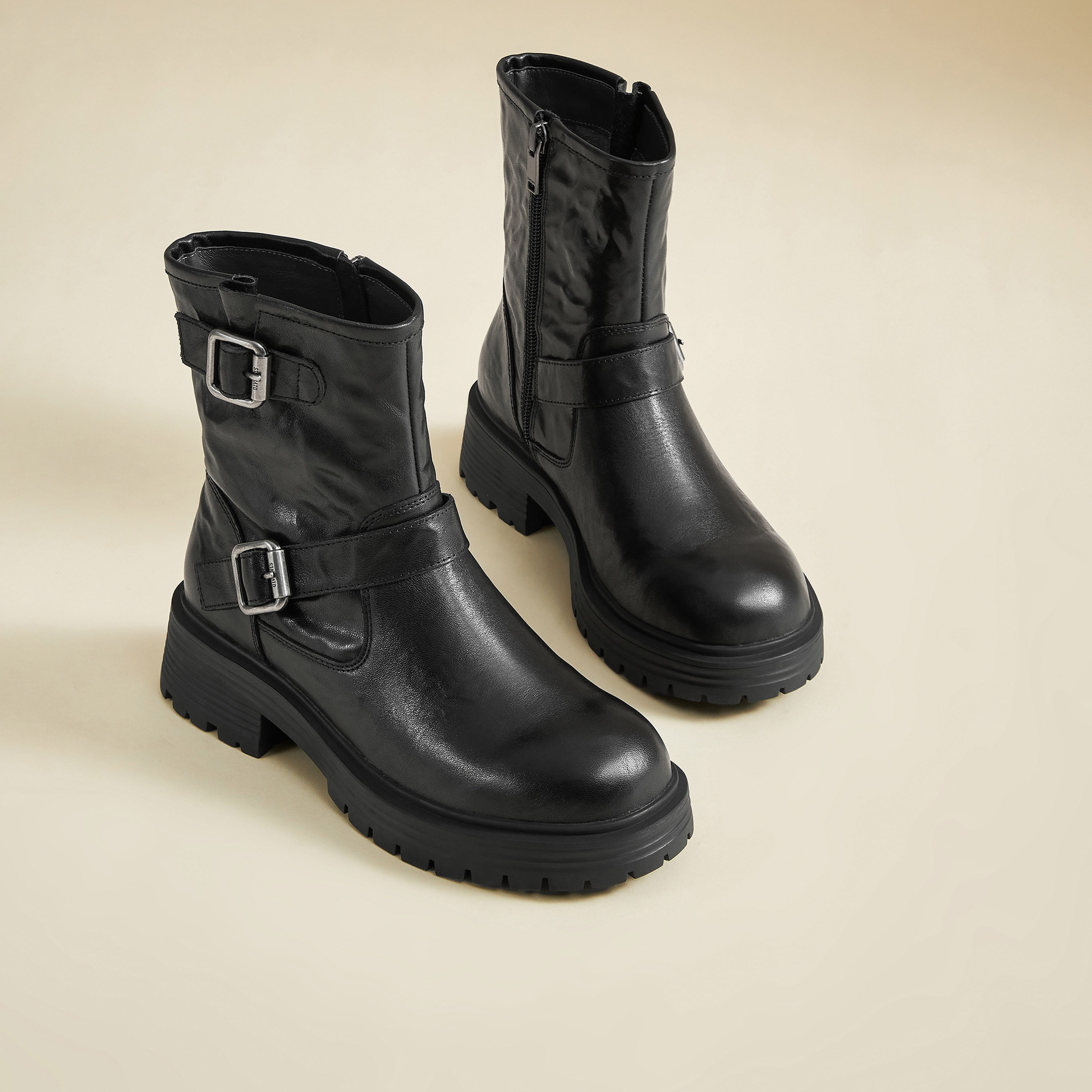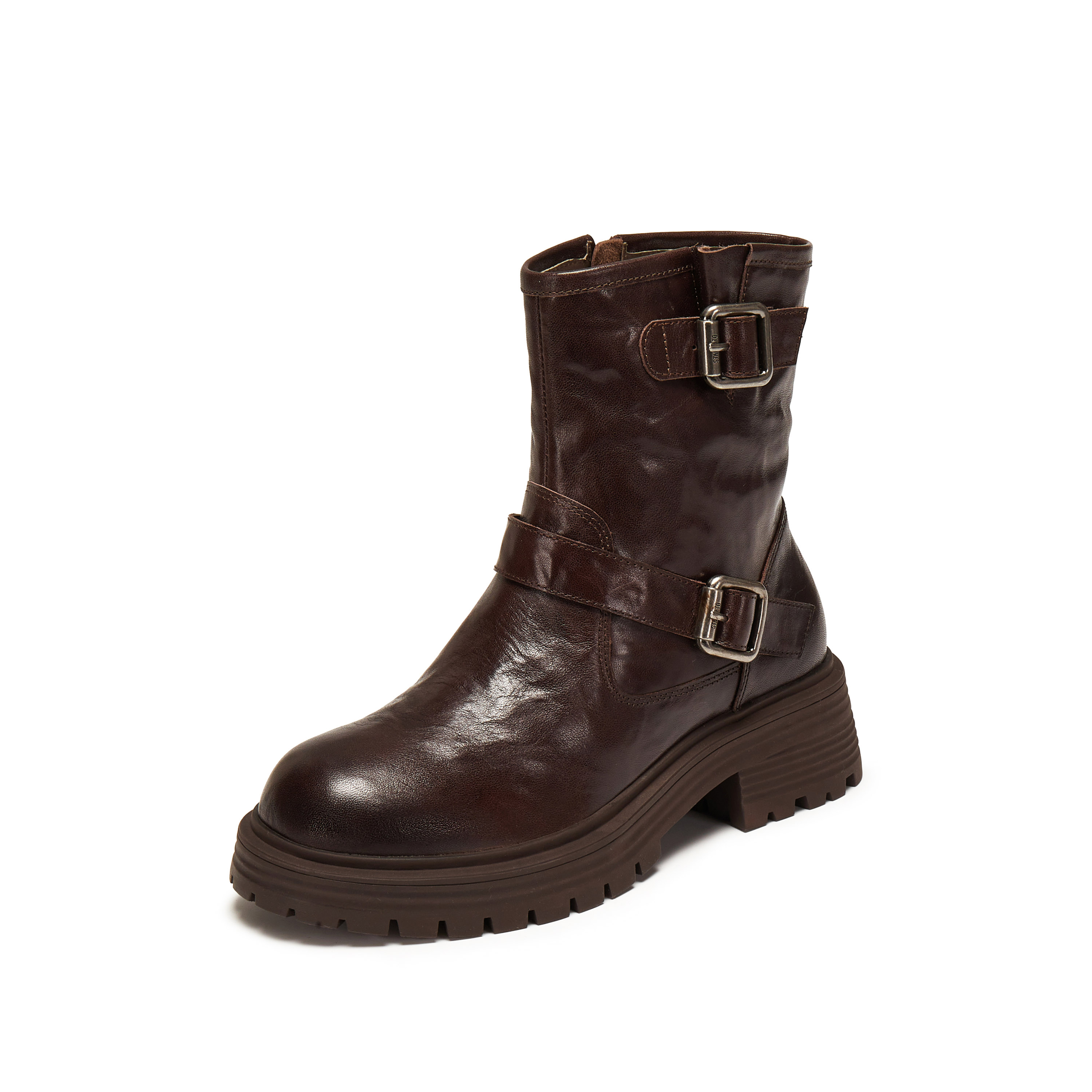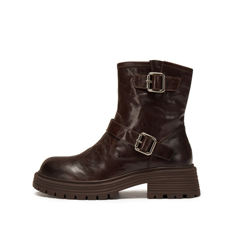 思加图2024冬季英伦风工装靴中筒靴厚底增高时装靴女靴子J3258DZ4