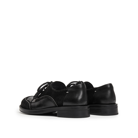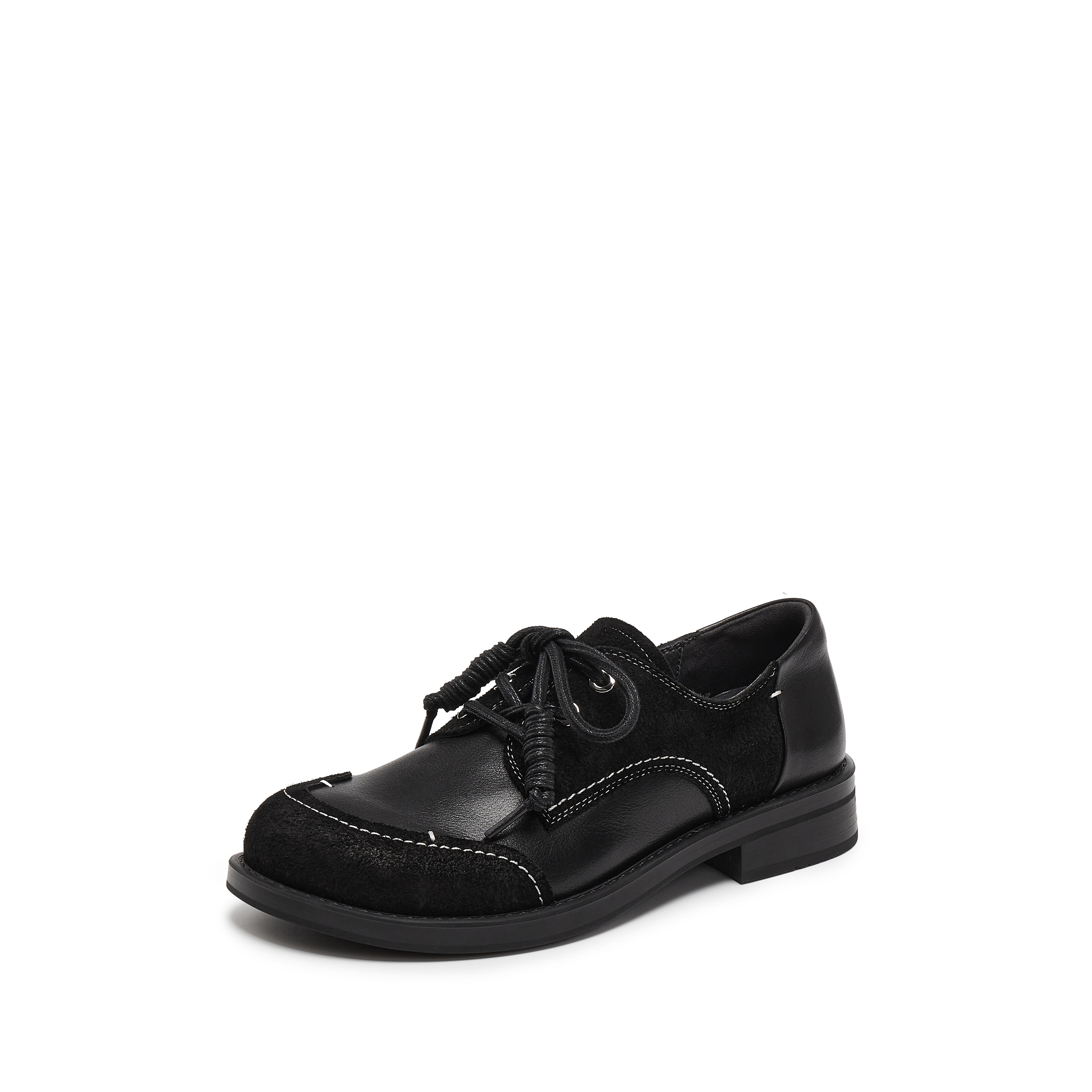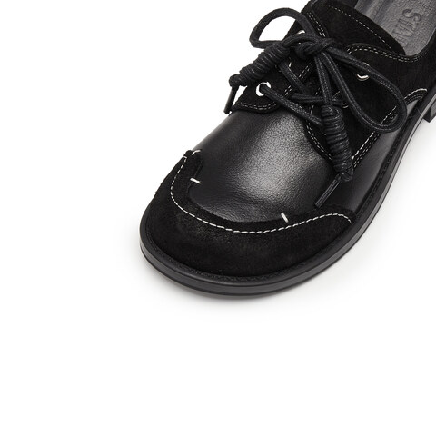 思加图2025秋季新款英伦复古牛津鞋小皮鞋粗跟黑色女单鞋J6926CM5