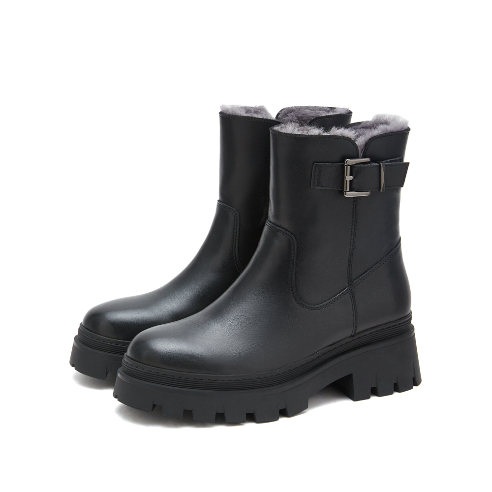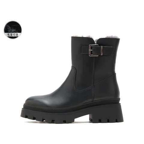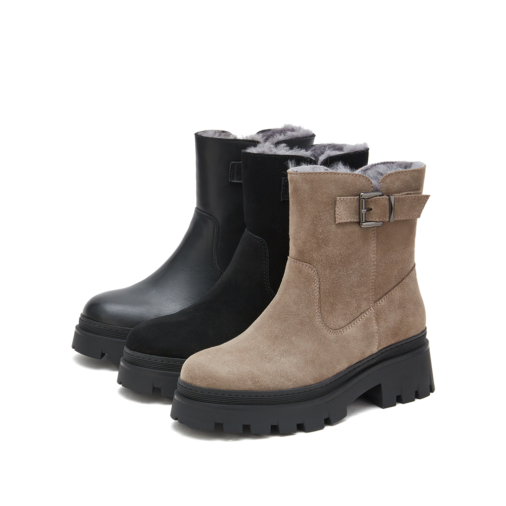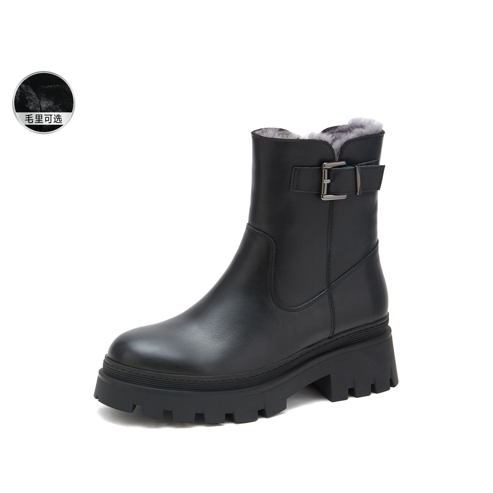 思加图2024冬季新款保暖毛里雪地靴厚底短靴女皮靴M7121DD4