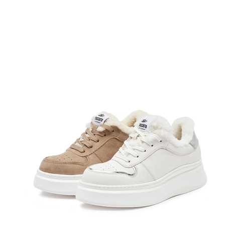 思加图2024冬季新款保暖毛毛鞋小白鞋厚底板鞋休闲鞋女鞋子S2266DM4