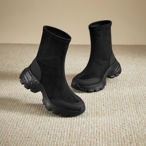思加图2024冬季复古运动靴短靴厚底增高时装靴女靴子Y2139DD4