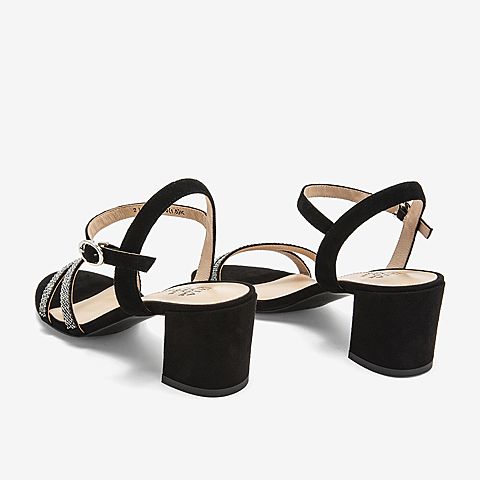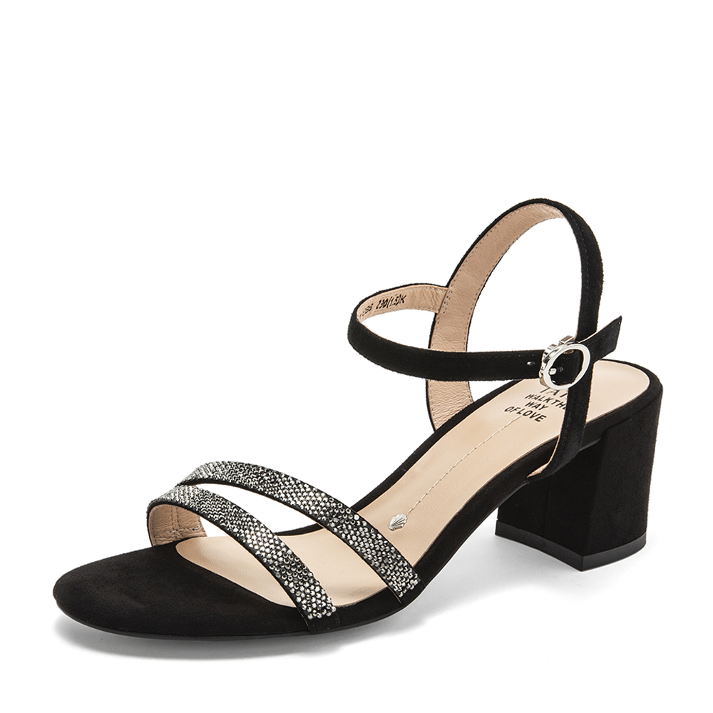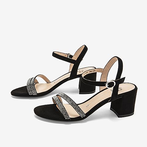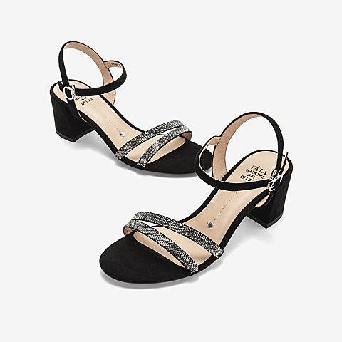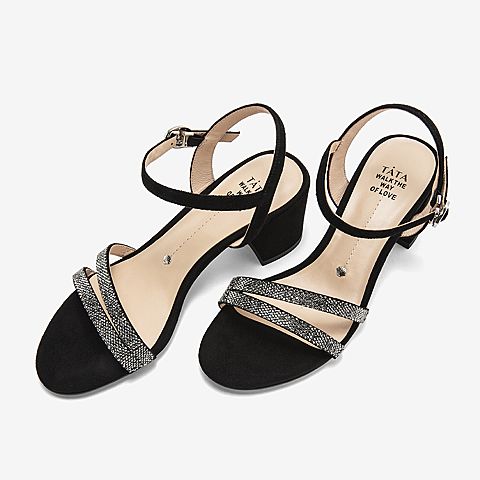 Tata/他她夏专柜同款黑色拼接一字带高跟女凉鞋2ICB6BL9