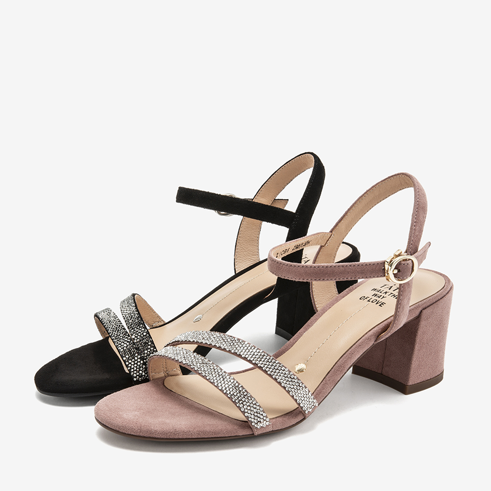 通勤拼接一字带高跟凉鞋