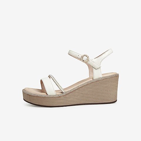 Tata/他她2021夏专柜同款时尚水钻饰坡跟时装凉鞋女凉新7MY01BL1