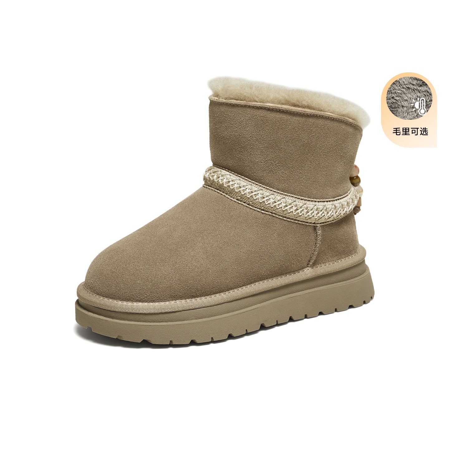• 里料材质:羊毛,人造短毛绒