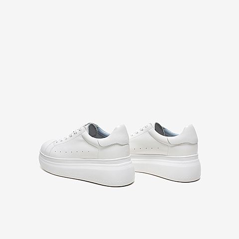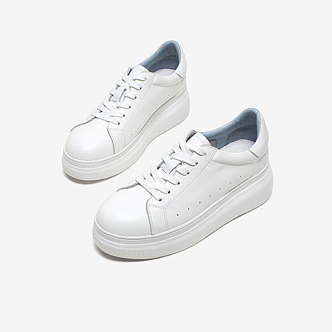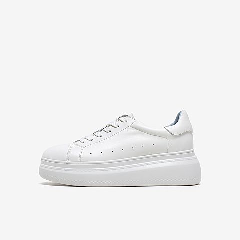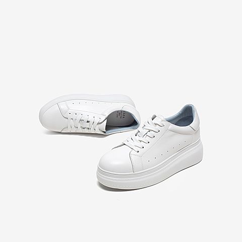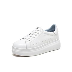 Tata/他她2020春白/蓝牛皮革时尚系带厚底小白鞋女休闲鞋DSCAAAM0
