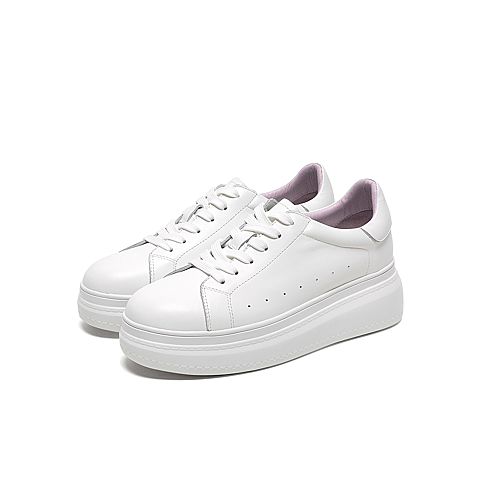 Tata/他她2020春白/紫牛皮革时尚系带厚底小白鞋女休闲鞋DSCAAAM0
