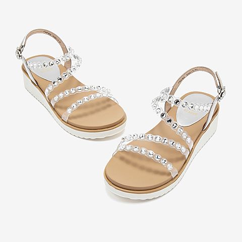 水钻透明条带坡跟凉鞋