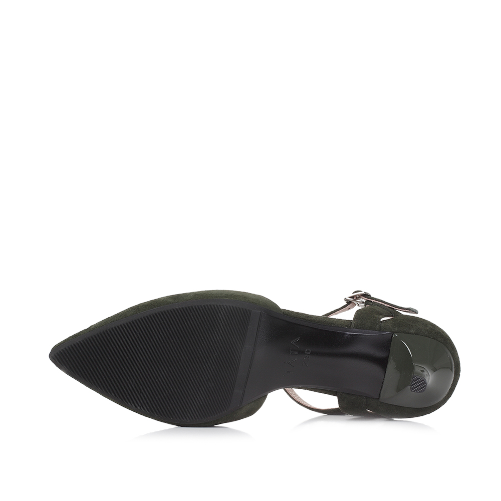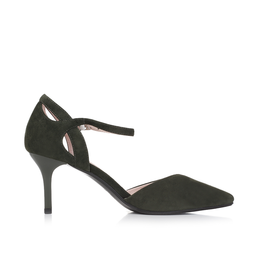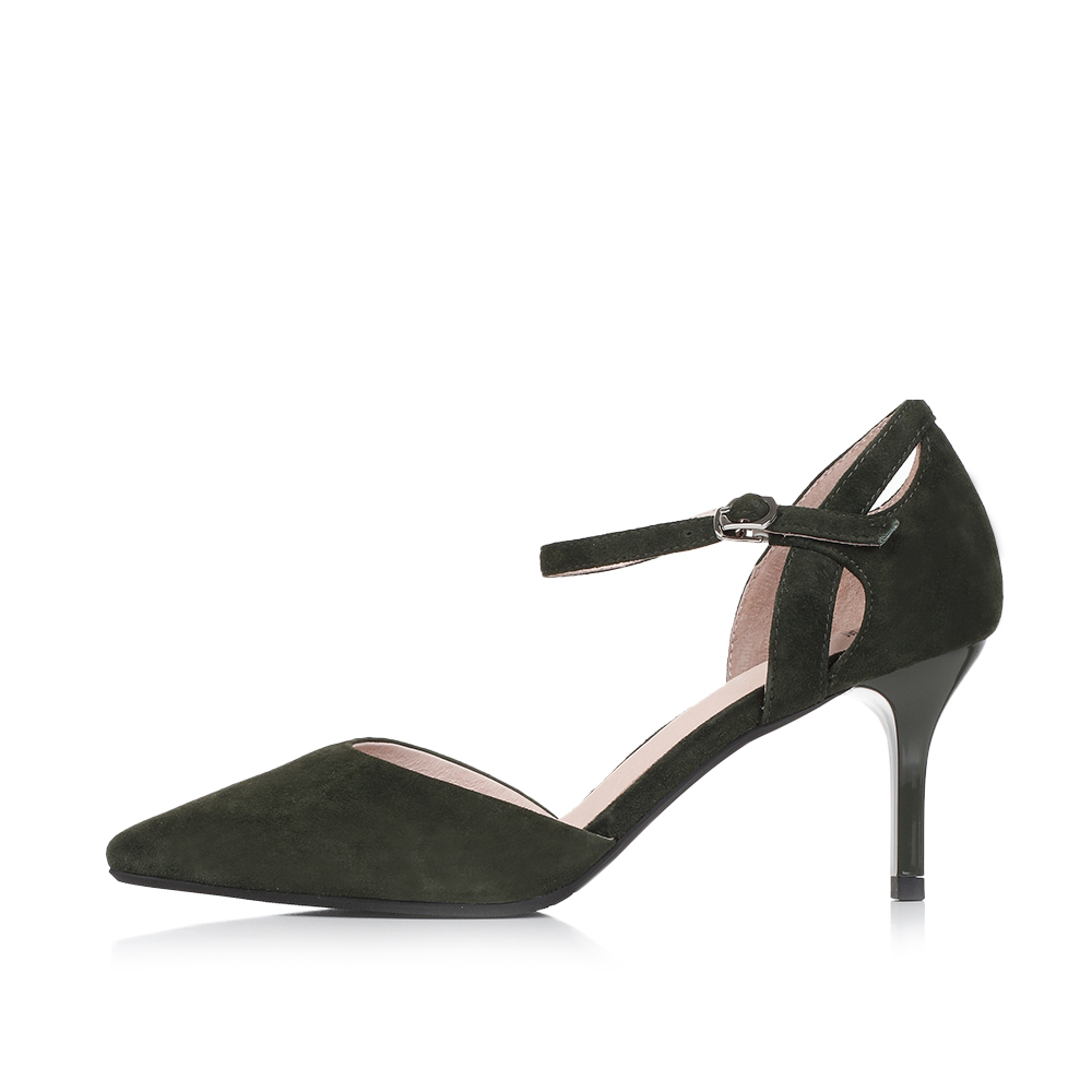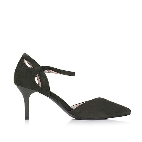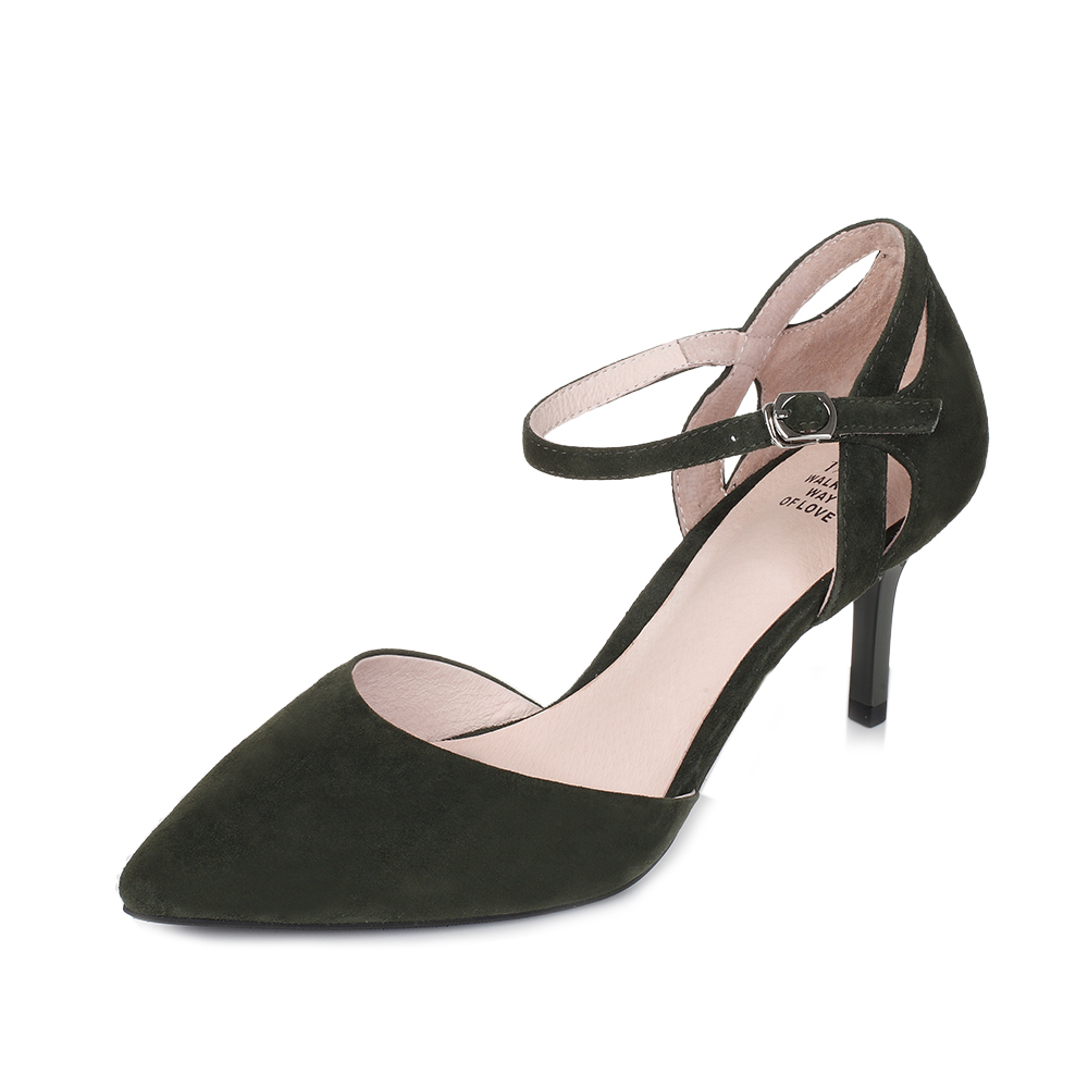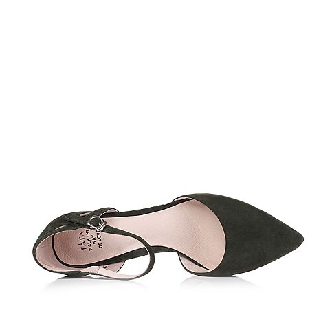 Tata/他她夏季军绿色羊皮玛丽珍时尚尖头一字扣带女皮凉鞋FD201BK7