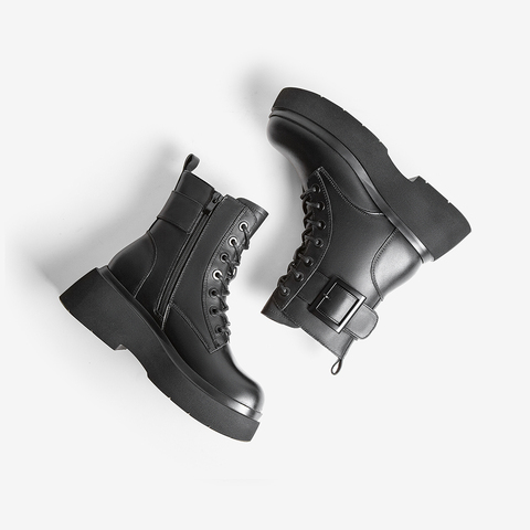 Tata/他她2021冬商场同款皮带扣饰厚底休闲马丁靴女靴新GGU02DD1