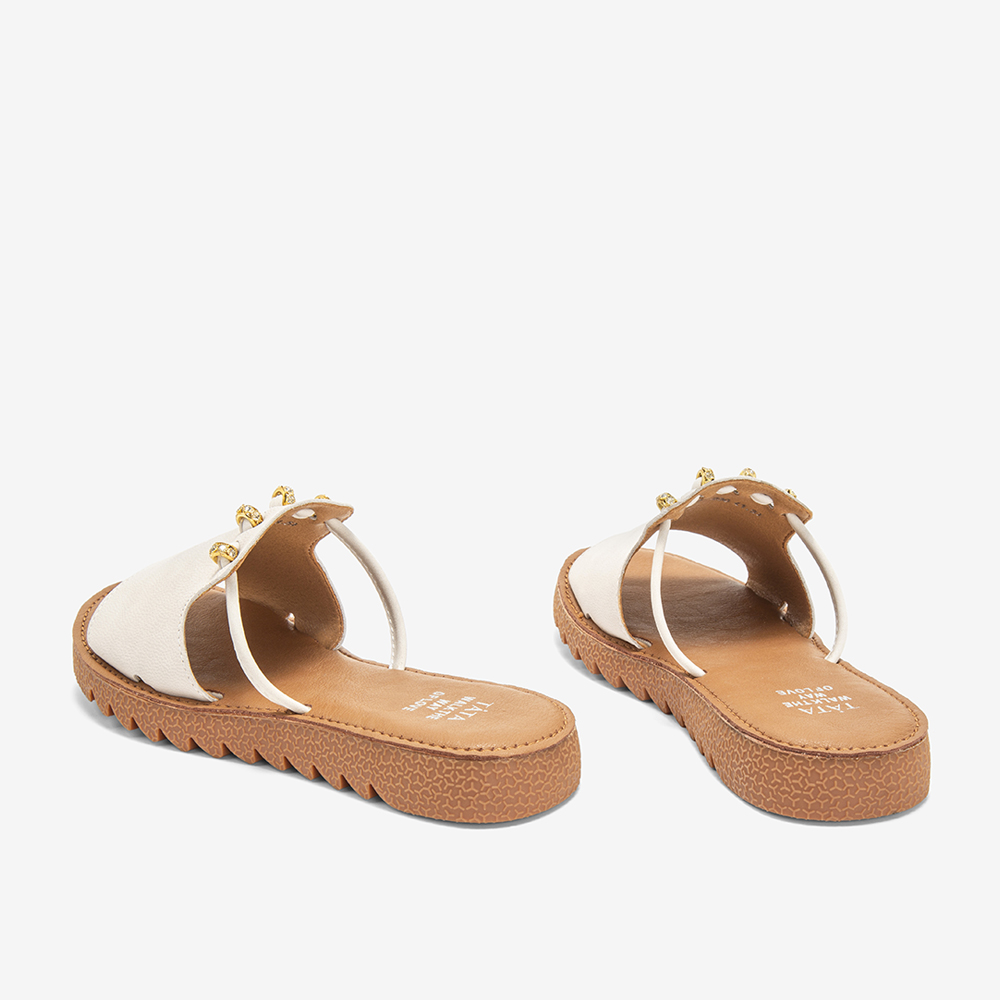 金属嵌钻饰平底拖鞋