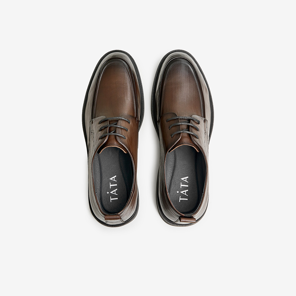 Tata/他她2023秋牛皮简约百搭方跟正装皮鞋男新款MAP03CM3