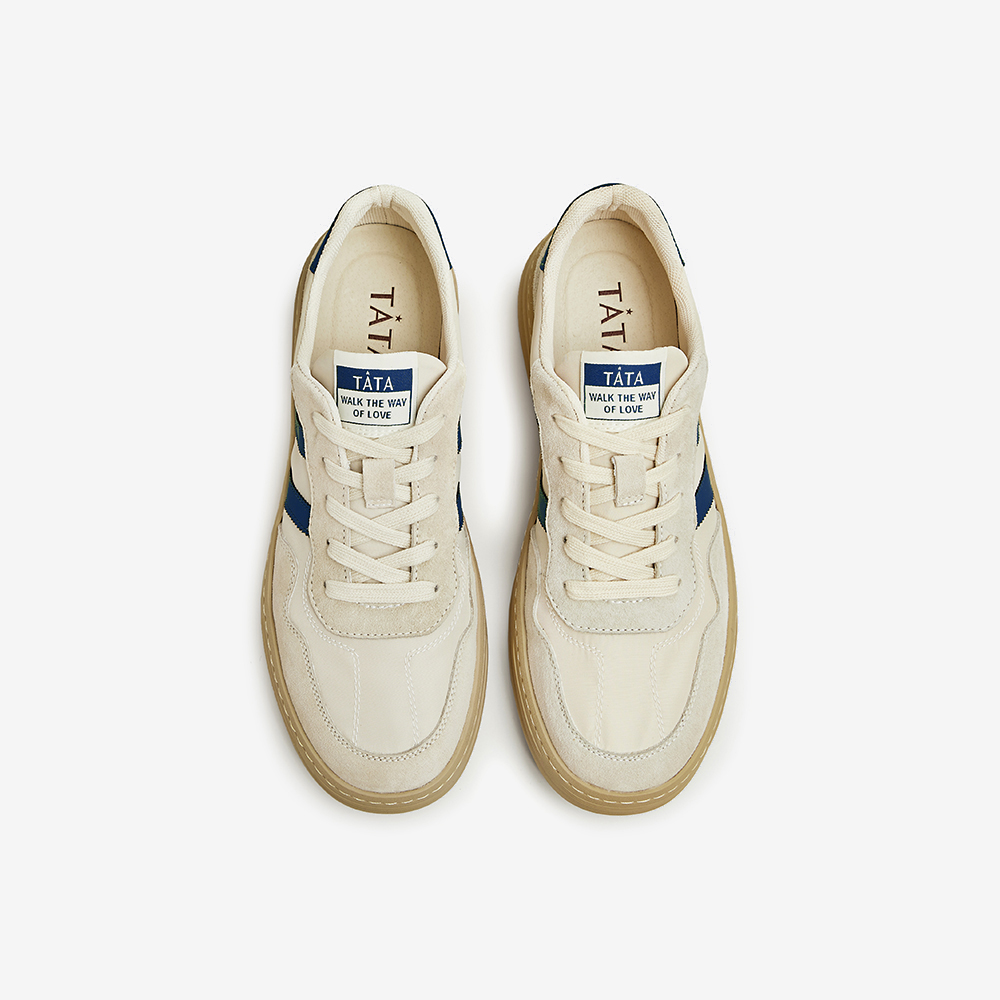 Tata/他她2023春时尚百搭拼接圆头休闲板鞋男鞋新款PBV01AM3