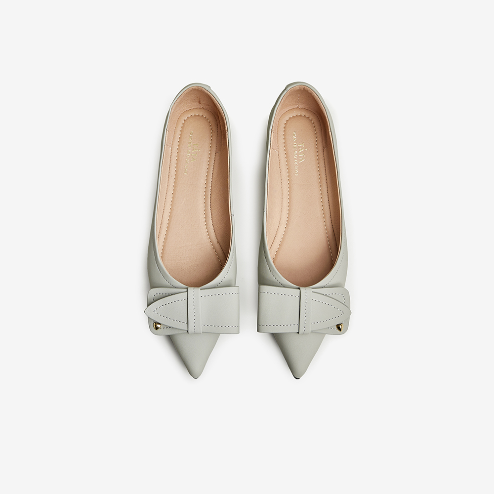 Tata/他她2023秋商场同款时尚尖头牛皮平跟浅口单鞋新UAL01CQ3