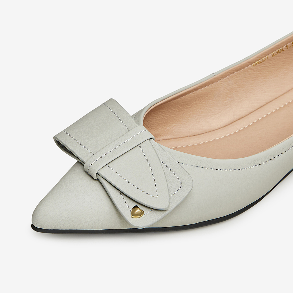 时尚尖头牛皮平跟浅口单鞋