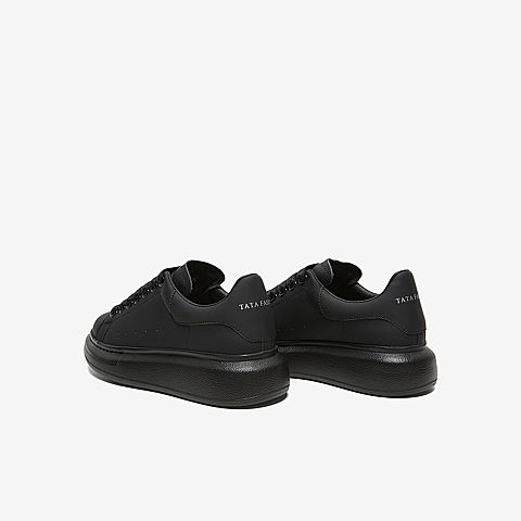Tata/他她2020春专柜同款黑色牛皮革绑带圆头厚底女休闲鞋WHL01AM0