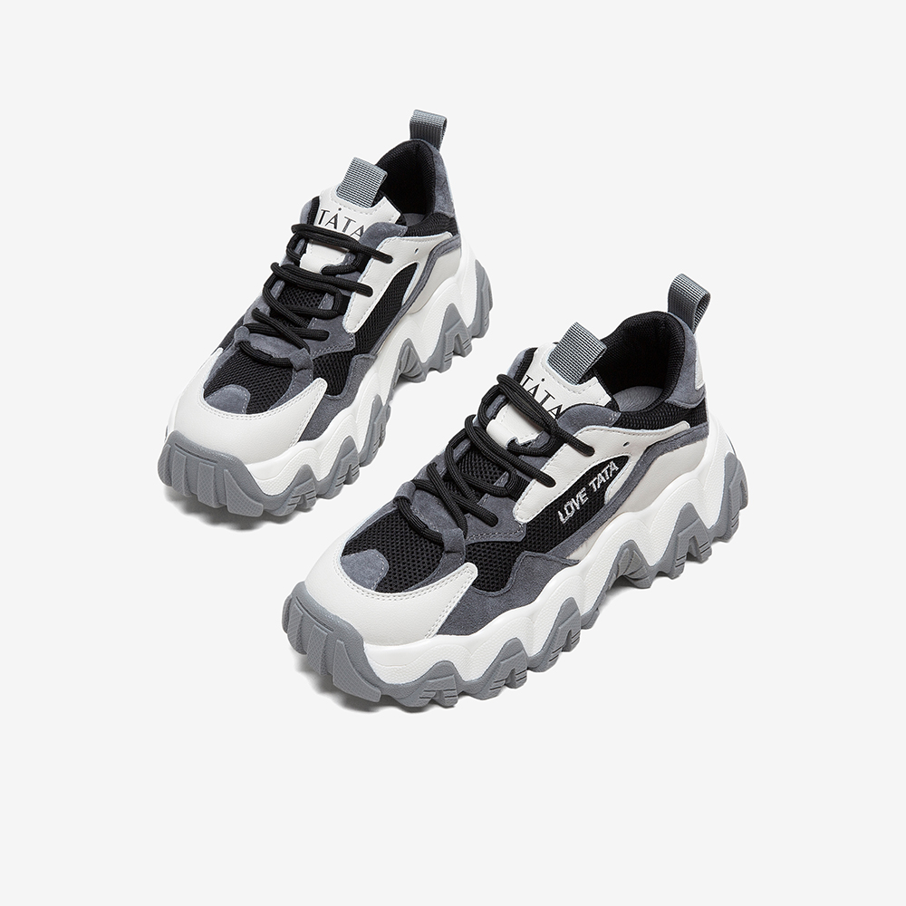 Tata/他她2020春专柜同款黑/灰/米白拼接撞色老爹鞋厚底鞋女休闲鞋WKE01AM0