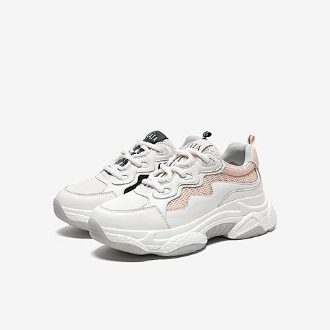 Tata/他她2020春白/粉拼接撞色老爹鞋运动厚底女休闲鞋WKG01AM0