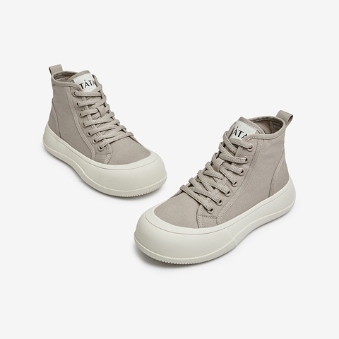 Tata/他她2022秋时尚圆头高帮帆布鞋休闲板鞋女新WSC03CM2