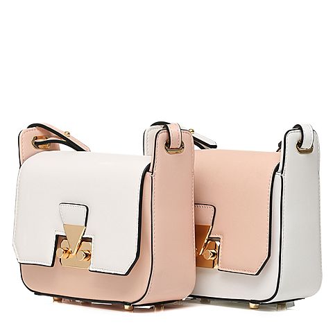 Tata/他她夏浅粉/白PU简约风OL时尚女包X1854BN7