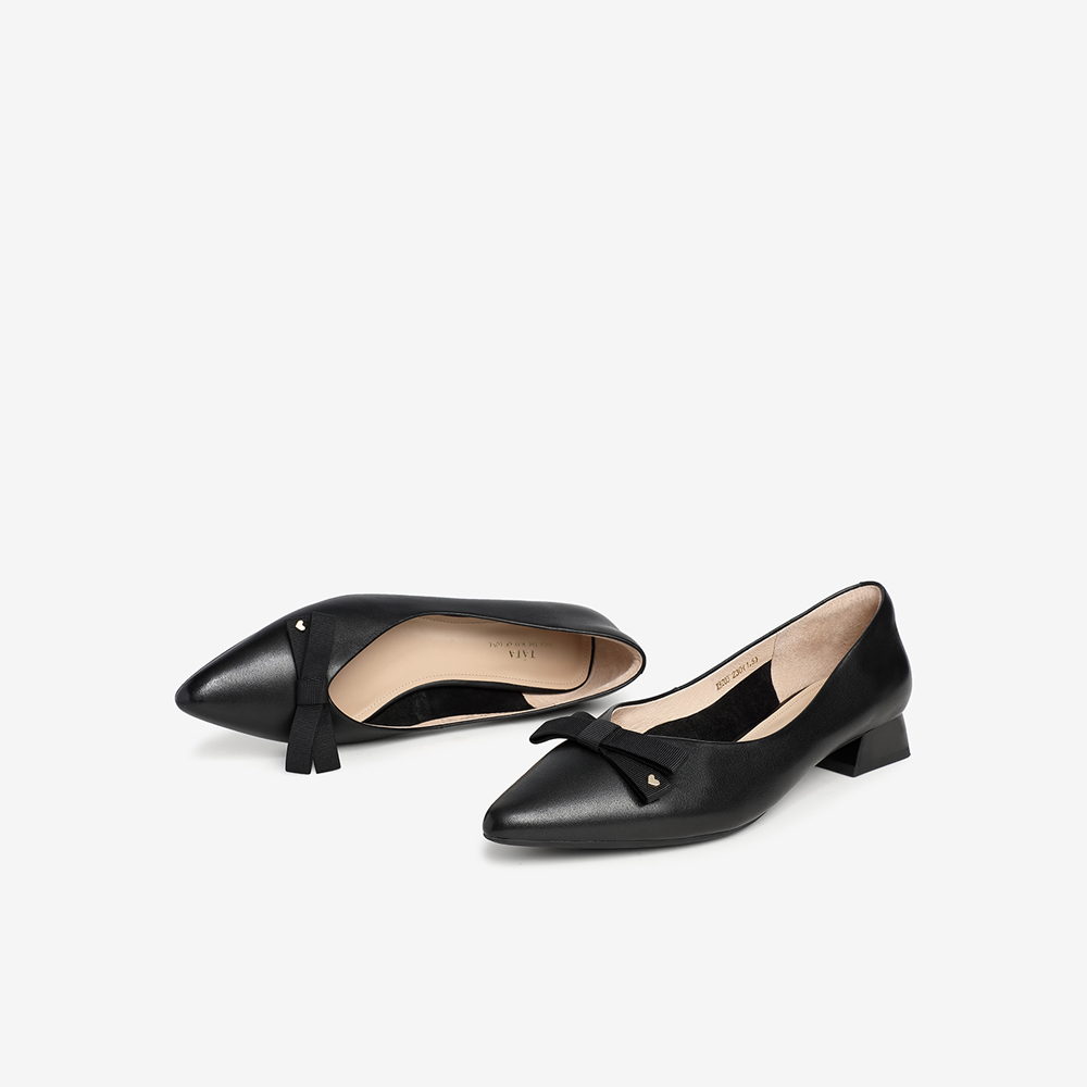 Tata/他她2021春专柜同款甜美蝴蝶结百搭方跟女单鞋XHZ03AQ1