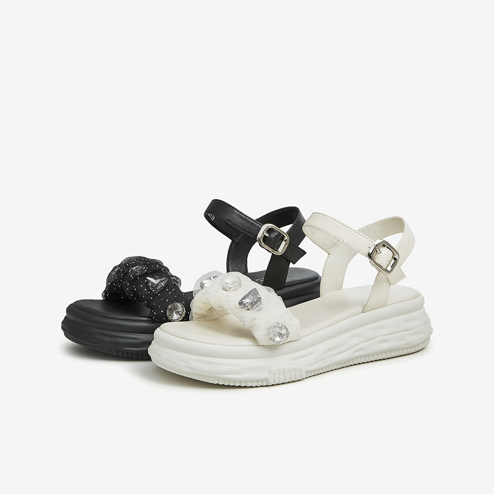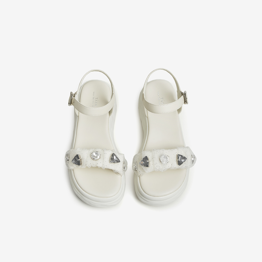 Tata/他她2023夏商场同款时尚潮流闪钻休闲凉鞋女新款YBJ01BL3