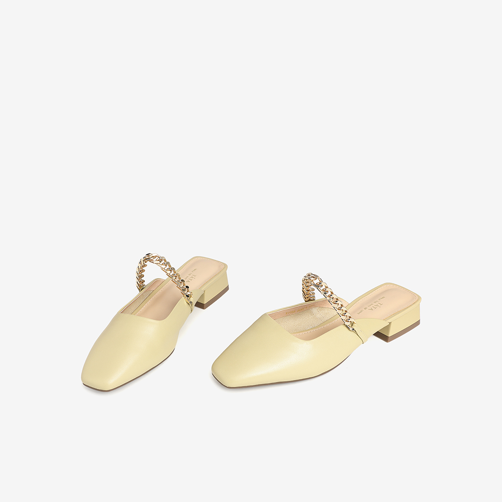 Tata/他她2021春低跟舒适尖头粗跟后空女穆勒鞋YZJ02AH1