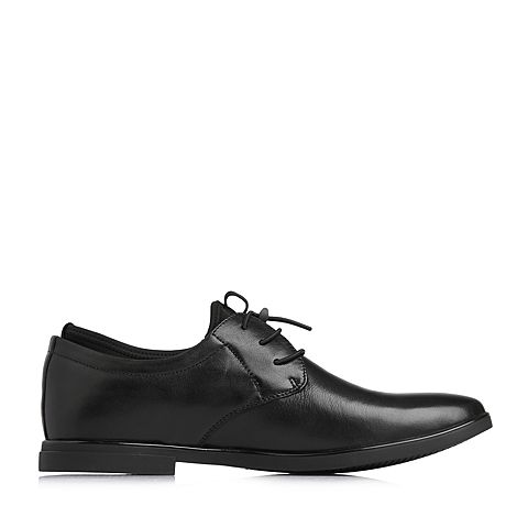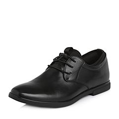 Teenmix/天美意春专柜同款黑色牛皮/织物舒适方跟男单鞋2GJ01AM8