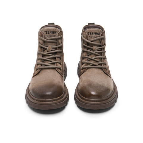天美意2024冬新款商场同款工装靴百搭户外复古男皮短靴3YP01DD4