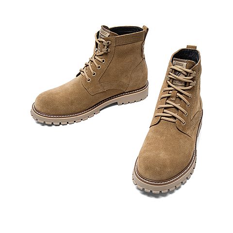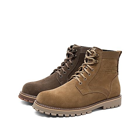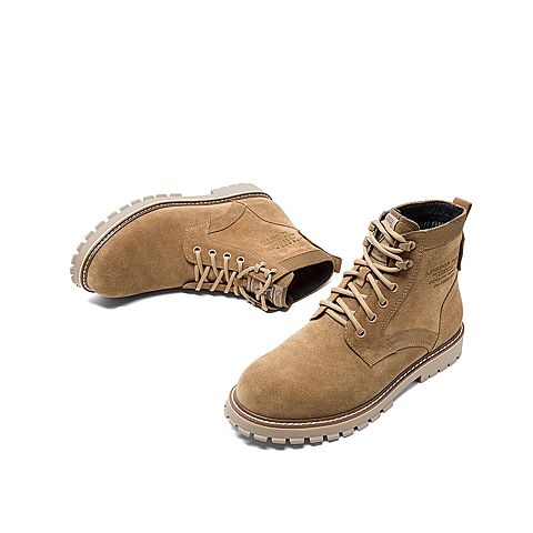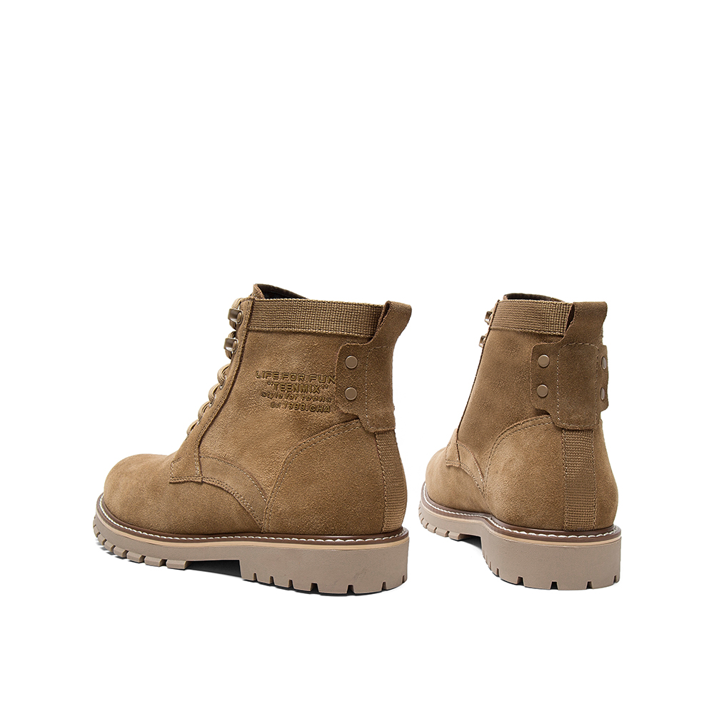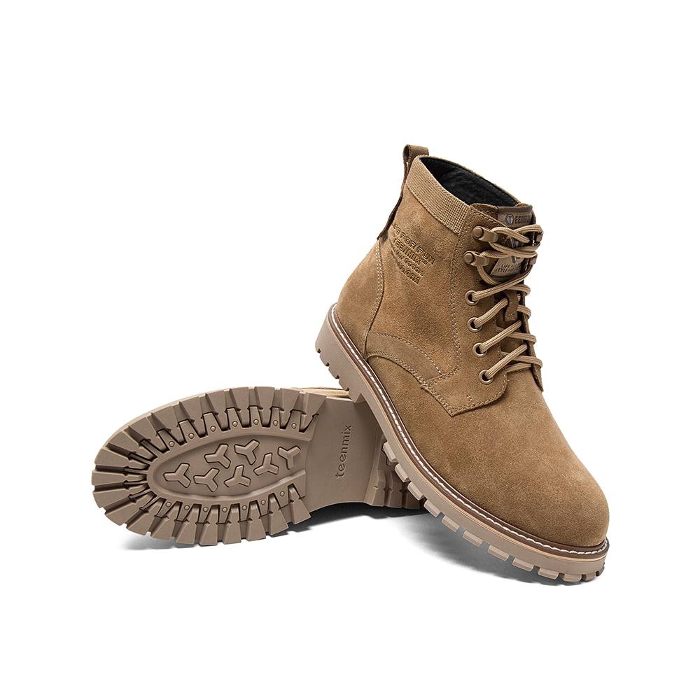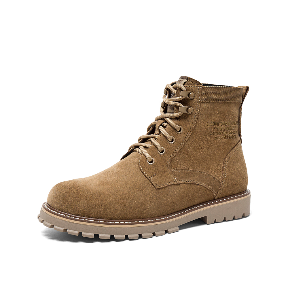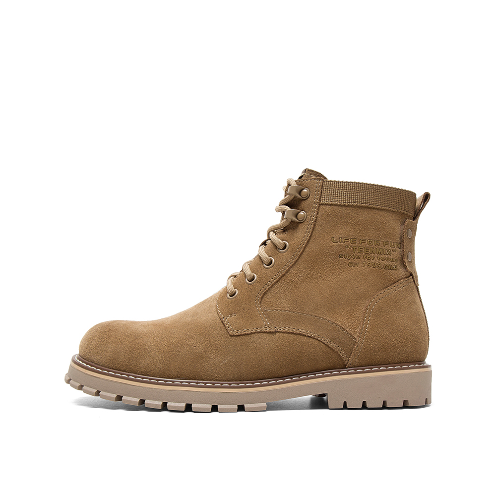 Teenmix/天美意冬新款商场同款棕色帅气绑带厚底剖层牛皮男马丁靴68V43DD9