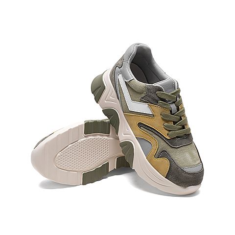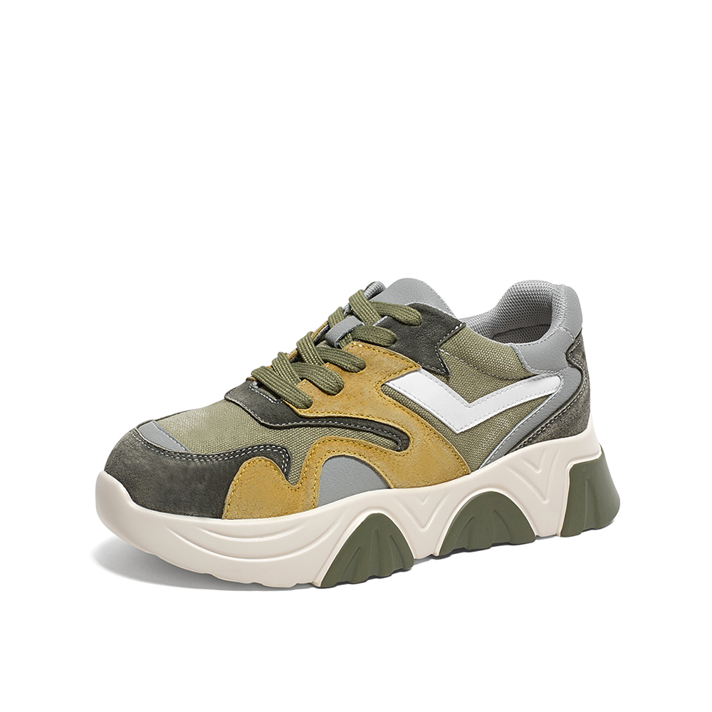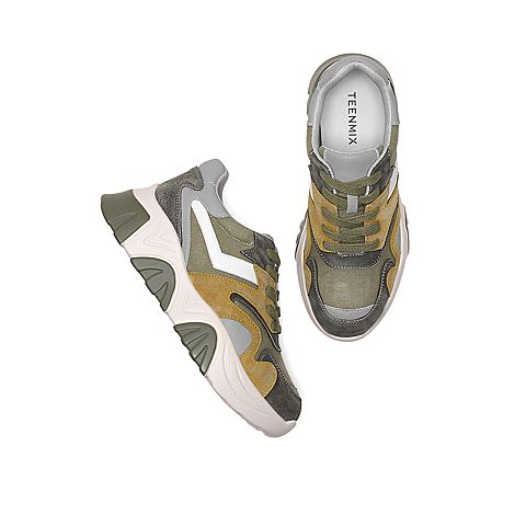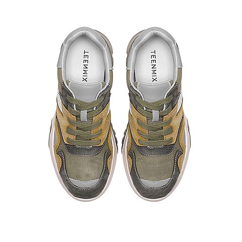 Teenmix/天美意2020春新款绿色拼色时尚厚底老爹鞋猪皮革/纺织品/人造革女旅游鞋9898DAM0