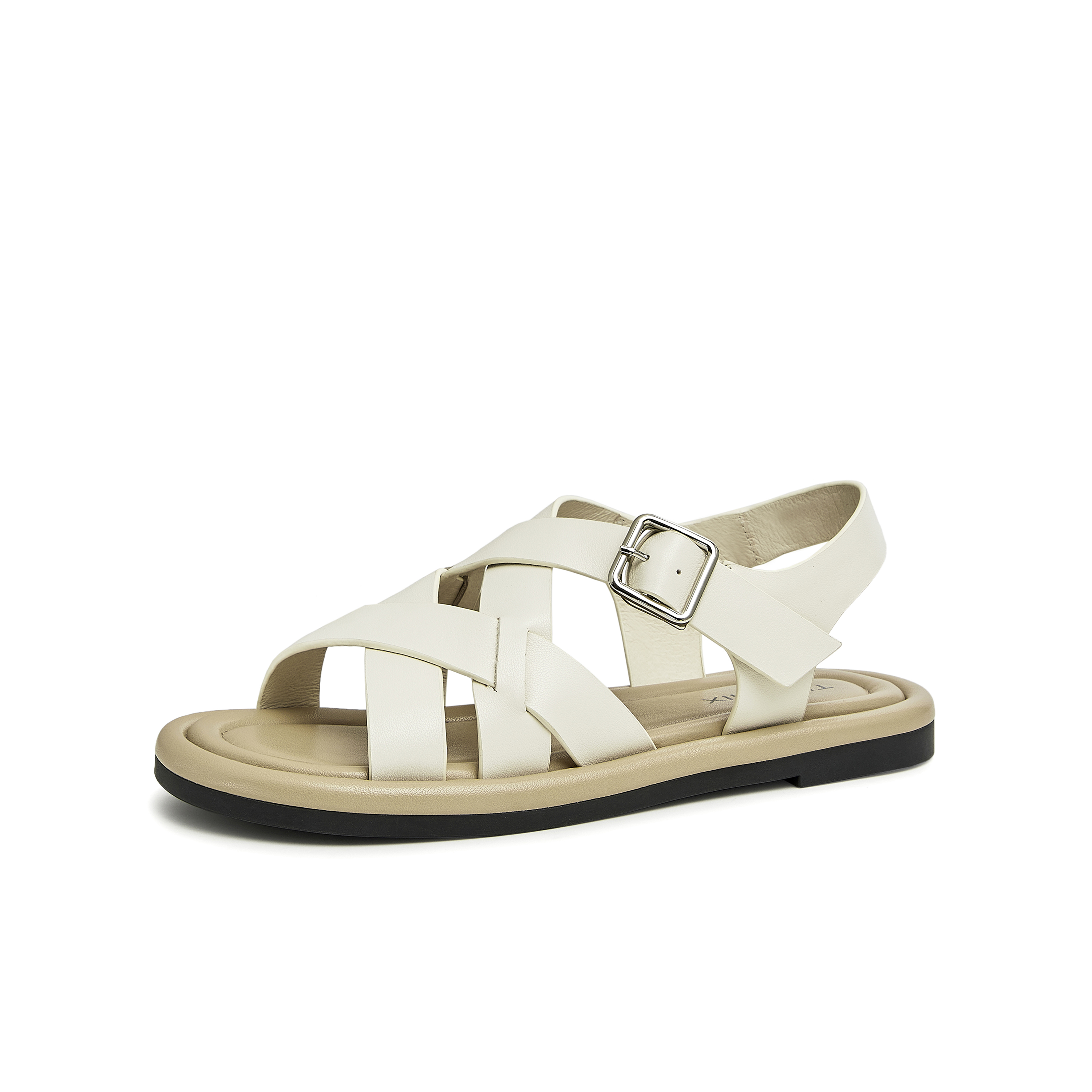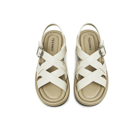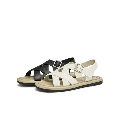天美意2023夏新款交叉带罗马鞋舒适平底韩版休闲女凉鞋AN011BL3