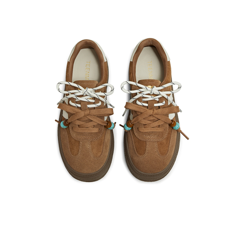 天美意2025冬新款厚底拼色复古百搭阿甘德训鞋女休闲鞋BJ541DM5