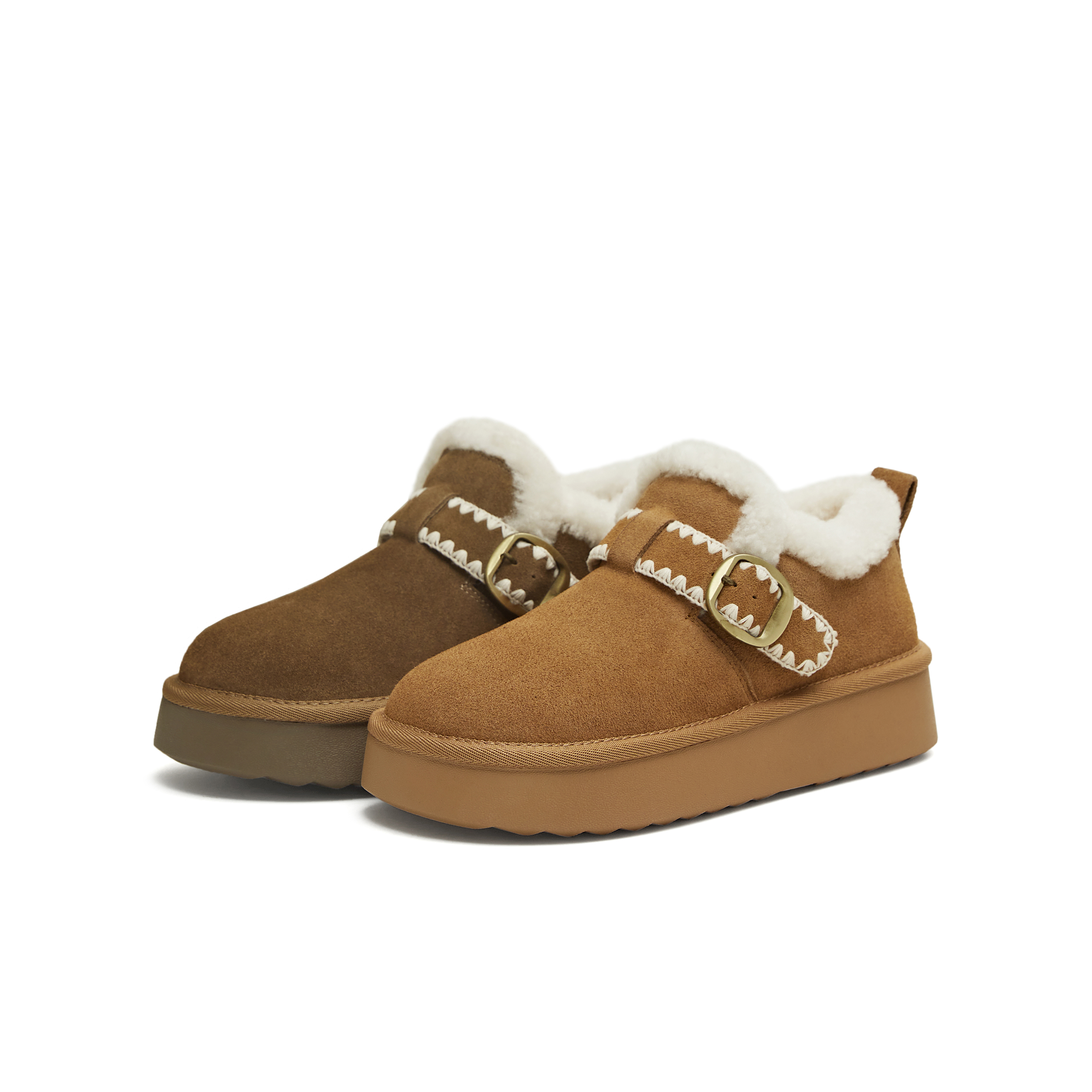 • 鞋面材质:羊毛皮,牛剖层革