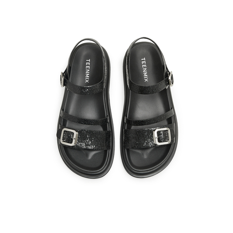 天美意2024夏新款商场同款时尚百搭简约通勤女休闲凉鞋CKW03BL4